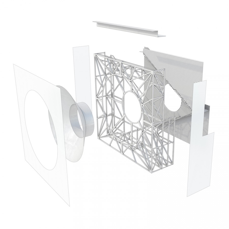 To emphasize the industrial context the choice of materials was guided by good value for money as well as ease of processing and future maintenance. Three types of materials were used, hot zinc dipped steel, trapezoidal sheet and polycarbonate.