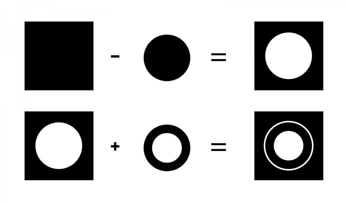 The „hole“ within the square emblematizes the missing matter, so to say the removal of resources, the essence of open cast mining.