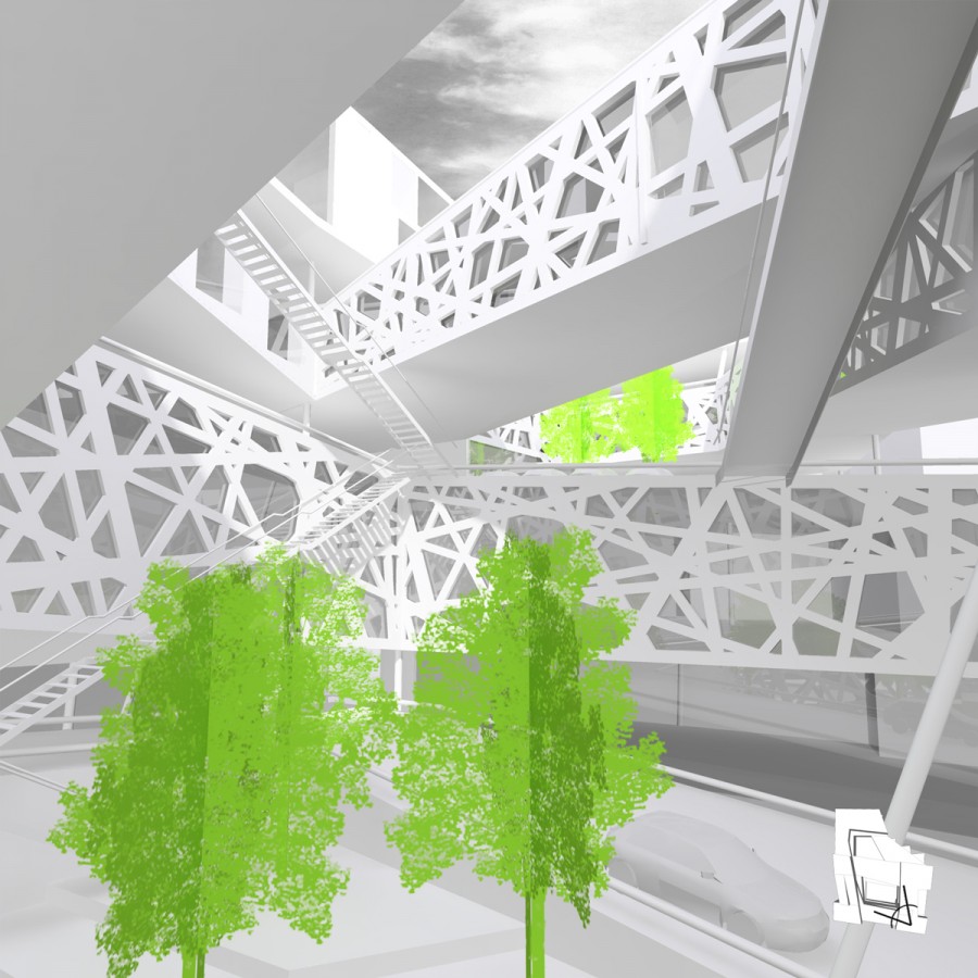 Multi- and pluripotent spaces emerge at the interfaces of different functional domains that are no longer uniquely attributed to a single produce. Interior and exterior can no longer be clearly distinguished, functions and spaces are interwoven so as to create new effects and interdependencies. The following exploitations are to be combined: Living, shopping, dining, sports, office, parking and nature.