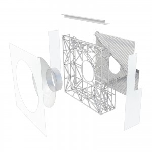 To emphasize the industrial context the choice of materials was guided by good value for money as well as ease of processing and future maintenance. Three types of materials were used, hot zinc dipped steel, trapezoidal sheet and polycarbonate.
