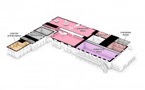 Going the other way around, the opposite scenario so to speak, the development core, which is located behind the information area, leads directly from the foyer to the planetarium area. Here too, a large glass area once again forms the visual border with the surrounding functional areas. Having had a glimpse of the exhibitions, the visitors will be keen to visit them as they make their way back towards the foyer from the dome. The functions merge into one. Despite the intended interaction between the functions, the design and the arrangement of the space given over to the different operators naturally also allow another conceivable scenario where the planetarium is separated spatially from the exhibition area. All levels can be reached via a lift, making them accessible to people with disabilities.