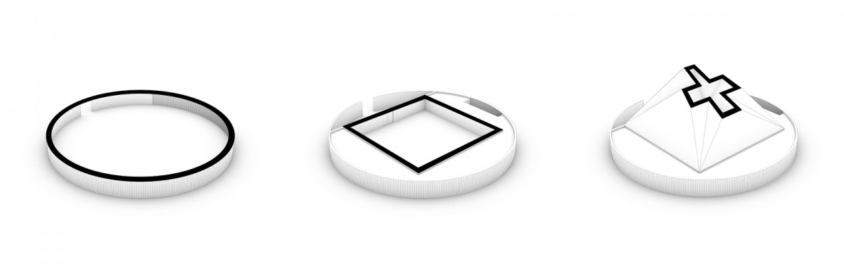 In general, compared to the design of a secular building, where the focus primarily lies on the programmatically and functional aspects, a church has additive characteristics which need to be considered. Therefore the design of the new church Våler derives from two major factors. First, the classical Christian symbolism plays a large role in the shape. Secondly, the atmosphere within the church should be designed for a place of rest, worship and communal gathering. The deliberate use of openings, to separate from the outside and the play of natural light are of great importance.